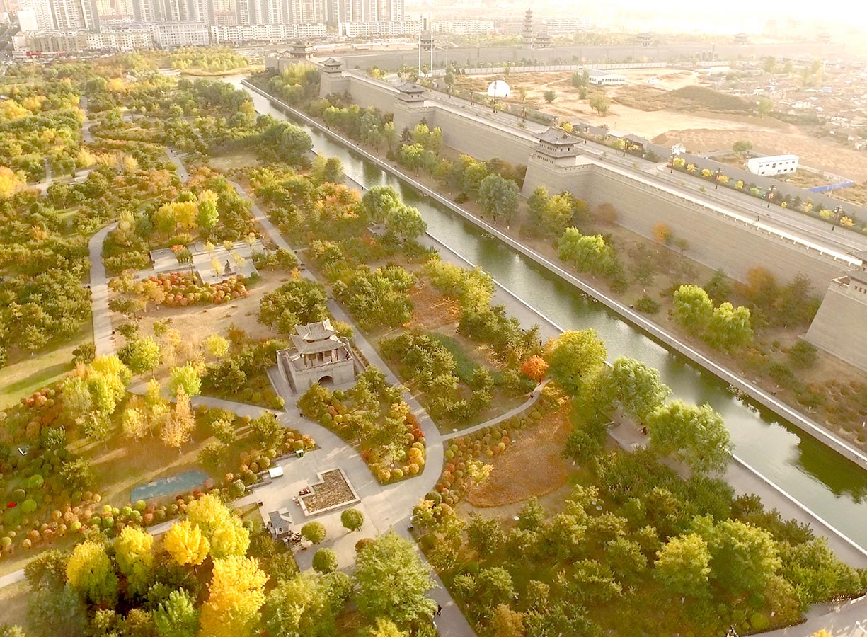 大同市東城墻及下沉式庭院廣場景觀綠化工程于2011年4月開工,工程建設(shè)中打造出綠化面積50000平方米、下沉式庭院廣場商鋪用地10000平方米、玻璃幕墻3500平方米、瓦墻2500平方米的市民觀光空間。